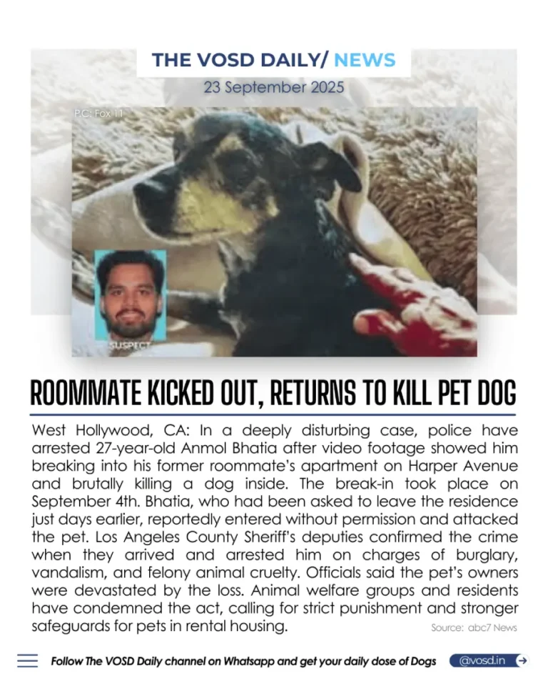 Innocent pet dog pays the price for human rage in California.